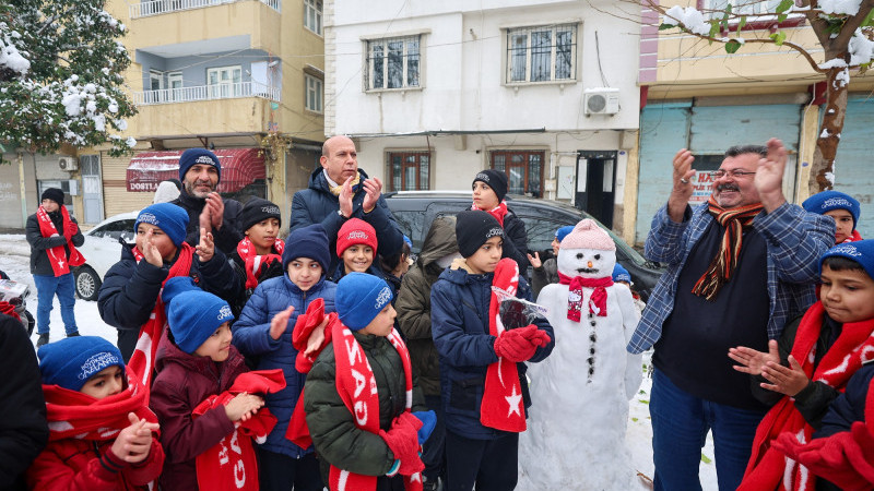 Gaziantep Büyükşehir Belediyesi, beyaza bürünen kentte karın tadını çıkaran çocukların sevincini paylaşarak onlara atkı, bere ve eldiven hediye etti, eğlencelerine ortak oldu.